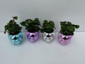 Trifoiul Norocos 🌿 este amplasat într-un ghiveci ceramic în formă de purceluș 🐷, simbol cunoscut al prosperității, câștigului și bunăstării.